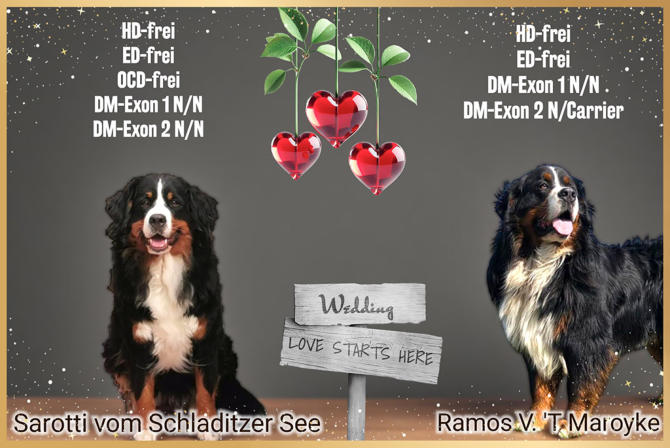 Sarotti und Ramos...... zwei Namen, die erst einmal recht anonym klingen....Aber es sind die Namen von zwei tollen, stolzen und wunderschönen Berner Sennen-Hunden.Unsere Gräfin Sarotti vom Schladitzer See undRamos V.T. Maroyke haben im Mai 2025 ihre Liebe zueinander entdeckt.